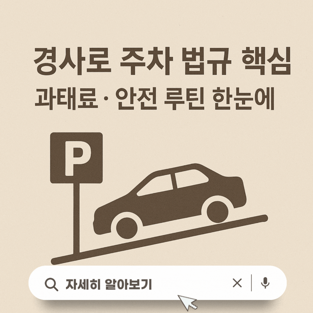 경사로에서 실수는 곧 비용과 위험입니다. 핸들 방향·P+주차브레이크·고임목 루틴을 익혀 사고와 과태료를 함께 줄이세요.